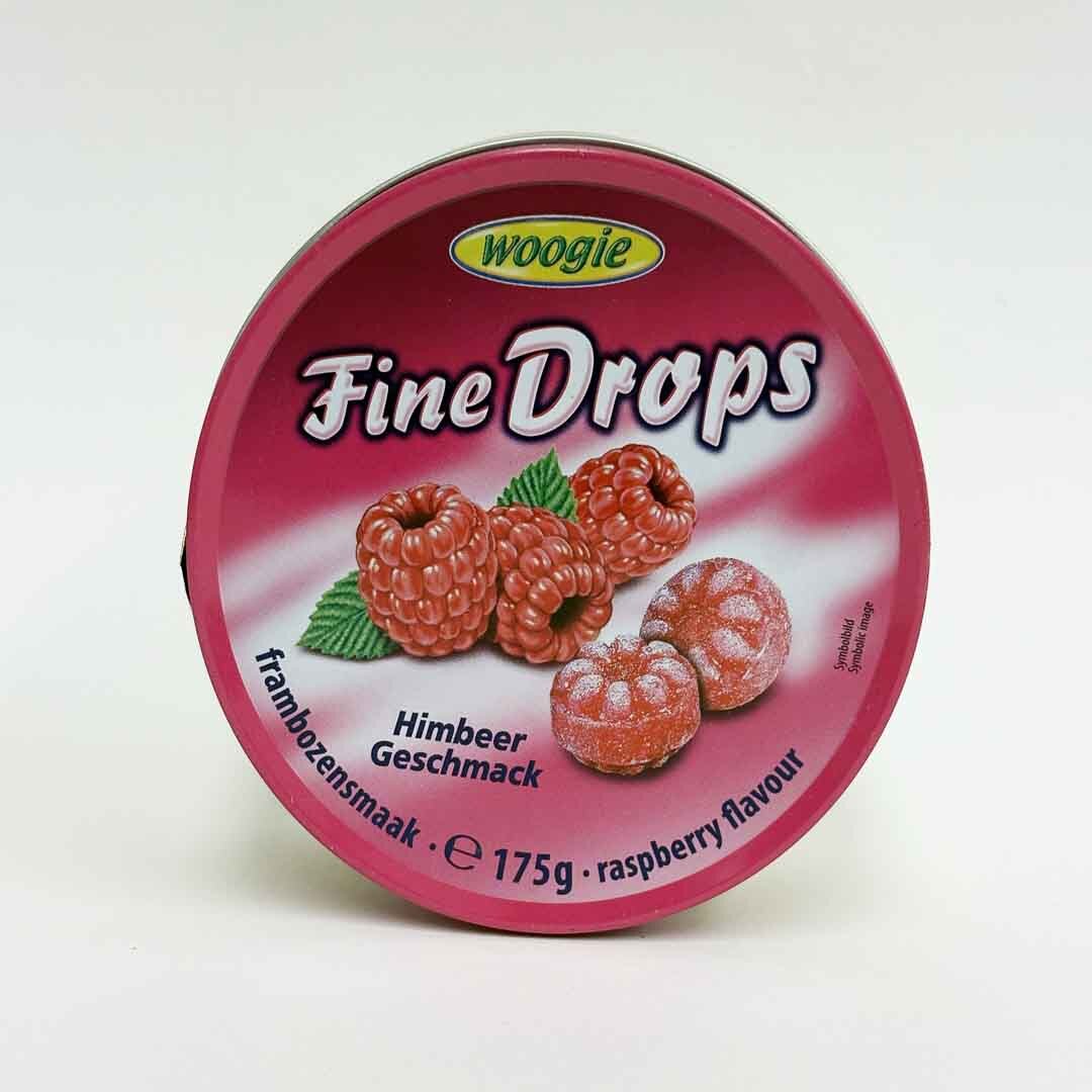 Fine Drops. Candy. Rasberry flavour. Woogie brand