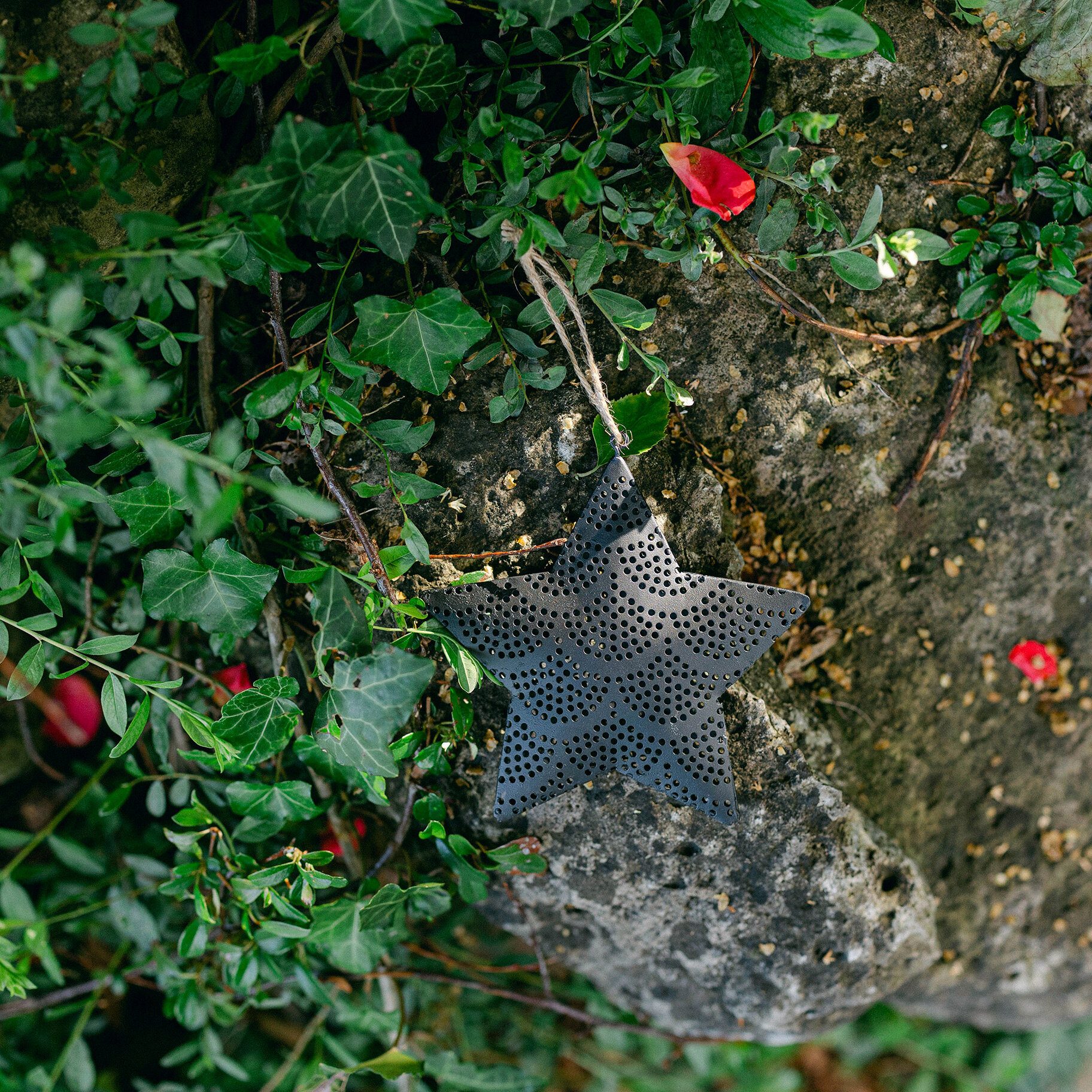 Hanging star decoration with perforated design.